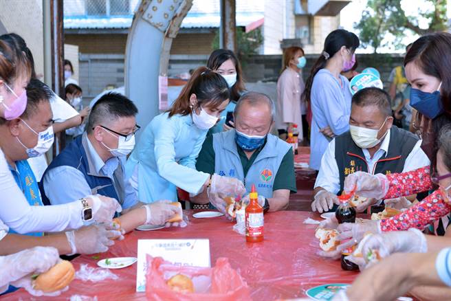 苗栗縣長徐耀昌等人到場體驗製作異國美食。(苗栗縣府提供/李京升苗栗傳真)