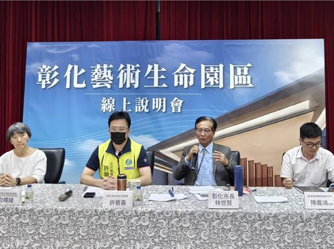 彰化市公所9日晚間舉辦「藝術生命園區設立概念構想」線上說明會,由彰化市長林世賢(右二)親上火線闡述理念。(彰化市公所提供/孫英哲彰化傳真)