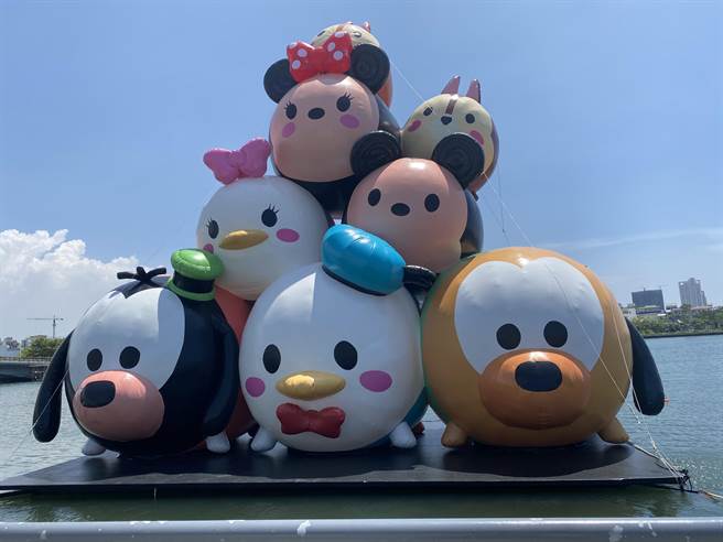 「米奇與朋友們」遊進安平遊憩碼頭,吸引民衆目光。(曹婷婷攝)