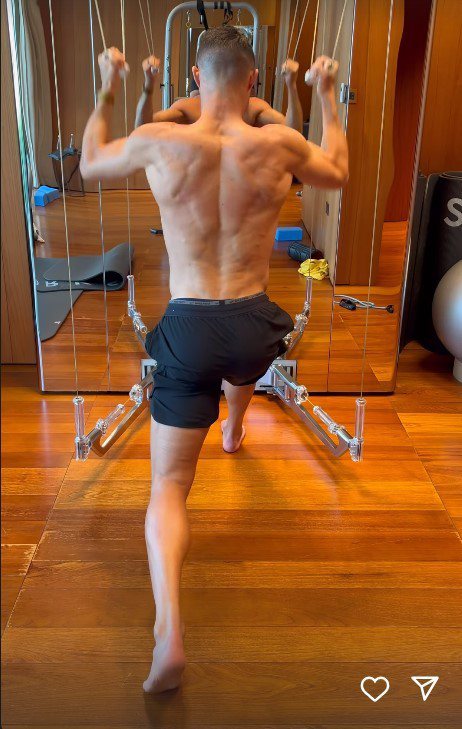 此外,C羅也在IG限動中,上傳他狂練肉的影片及照片,簡直是健美先生的身材,效命於阿拉伯聯賽艾納斯隊的他,目前球隊戰績排名第二,現正處於球賽冬日休兵期,C羅仍繼續保持體能狀態,本季他爲球隊出賽18場,踢進20進球,仍是一尾活龍。